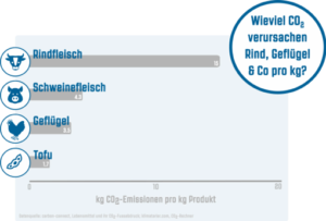 Gemäss dem Bundesamt für Umwelt ist die Ernährung verantwortlich für rund einen Drittel der Gesamtumweltbelastung** der Schweiz, wovon 25% auf den Konsum von Fleisch und Fisch zurückzuführen sind. In der Folge verspricht sich der Bund zur Optimierung unserer Umweltbelastung ein sehr grosses Potential beim Konsum von Lebensmittel, insbesondere bei der Wahl zwischen tierischen und pflanzlichen Nahrungsmitteln. Denn die Fleischindustrie ist weltweit einer der grössten Verursacher von Treibhausgasen. Zum einen verwandeln Fleischproduzenten fruchtbares Land und Regenwälder in Agrarland für den Anbau von Futtermitteln. Zum anderen stossen die Tiere selbst, besonders Kühe, eine grosse Menge an Treibhausgasen, wie zum Beispiel Methan, aus. Hinzu kommt, dass wir mit dem durchschnittlichen Konsum von 50 kg Fleisch pro Jahr (Agrarbericht 2017) den vom Bundesamt für Lebensmittelsicherheit und Veterinärwesen empfohlenen Wert von 14 kg um mehr als das Dreifache überschreiten. Wenn du dich an die offiziellen Empfehlungen hältst, kannst du pro Jahr 246 kg CO2 einsparen – das entspricht der Menge CO2, die jährlich von 20 Bäumen gespeichert wird (swissclimate.ch). Relevant ist dabei aber auch, welche Art von Fleisch gekauft wird. So ist der Konsum von Rindfleisch zwar nur halb so gross, wie der von Schweinefleisch. Dennoch verursacht der nationale Rindfleischkonsum gemäss carbon-connect mehr CO2 im Vergleich zum Schweinefleischkonsum. Am „klimafreundlichsten“ von den Fleisch Produkten schneidet Geflügel ab.