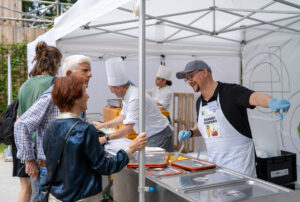 After the success of our first edition in 2023, the environmental association MYBLUEPLANET, the cooperative COSEDEC, and Biovision, accompanied by Foodwaste.ch, repeated the experience with a second Lausanne edition on Thursday, June 6, 2024, from 11 am to 9 pm, at Place des Pionnières. After long months of work, we collected nearly 800 kg of unsold food items with the help of the Table couvre-toi association. The vegetables and fruits were then prepared and cooked by a team of volunteers and chefs from Eldora.