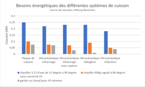 La figure compare la consommation d’énergie pour trois activités de cuisson différentes.